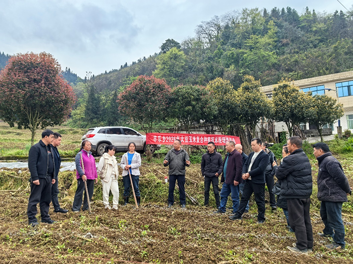 人勤春来早,春耕正当时。为切实抓好春耕生产,筑牢粮食安全根基,2026年3月25日,筠连县科技特派团一行4人深入丰乐乡龙塘村,为种粮大户及周边农户开展酿酒专用粮(玉米)大豆复合种植技术培训。丰乐乡农业农村发展服务中心相关负责同志、当地种粮大户到场参加。