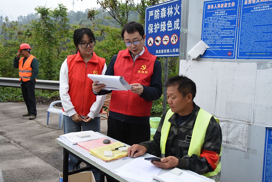 “您好,请问进山事由是什么?请将打火机交由我们保管,并登记姓名、车牌和手机号码……”4月3日,在荣县度佳镇鸭子凼村森林防火出入卡点,佩戴红袖标的安检员正有条不紊地对进山祭祖的车主张某进行检查。他一面递出入林登记本,一面递上《森林防火须知》,耐心告知:“林区内严禁烧纸、点烛、焚香、燃放鞭炮,建议使用电子炮替代传统鞭炮。”完成登记与安全告知后,张某才驾车带领家人缓缓驶入林区。