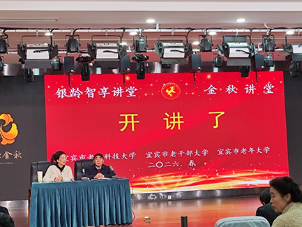 2026年3月17日上午,由宜宾市老年科技大学、宜宾市老干部大学、宜宾市老年大学联合举办的“银龄智享讲堂”春季学期开学第一课《体脂与健康》,在市老干部大学底楼多功能厅正式开讲。市老科协会长郑耀银主持开学仪式并致辞,来自市老科协各专委会、翠屏区老科协、叙州区老科协的100余名会员,以及三校的部分学员参加了学习。