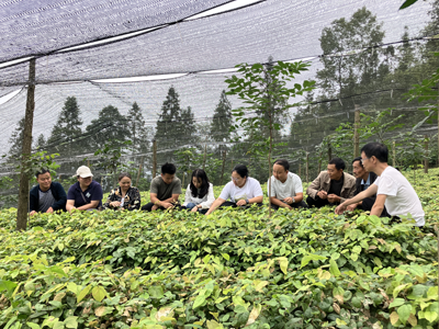 刘蓉博士一行,一边听取杨川副乡长全乡以黄连、淫羊藿、白芨、黄精、川芎为主的中药材发展情况介绍,一边查看这些中药材的长势情况,并对发现的烂根、焦叶、病害茎叶取样,带回宜宾学院农林与食品工程学部通过实验室检测,为后面综合防控提供具体方案。刘蓉博士,研究生毕业于中国科学院成都生物研究所,擅长作物优良新基因的挖掘和机制研究、药用植物次生代谢产物合成机理研究。郑璐遥博士,研究生毕业于中国药科大学,擅长药食同源物质中活性成分的挖掘及其作用机制研究。吴望硕士,研究生毕业于西南大学,擅长植物真菌病害防治机理研究。
