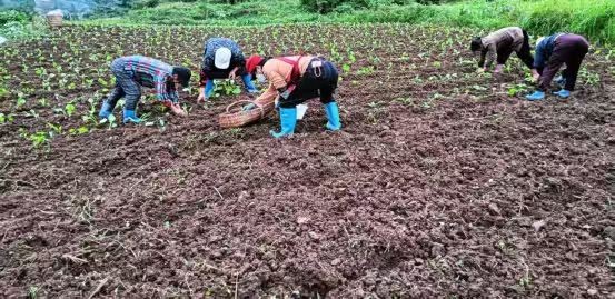 “油菜移栽,施肥是关键。硼肥要喷施,用量需精准,切莫贪多!”农业老专家熊孝刚手持秧苗,面对围拢的农户,将复杂的种植技术转化为接地气的“田间口诀”。在他身旁,高级农艺师张平一边演示苗床施肥技巧,一边强调:“根系护牢、苗株扶正,定根水紧跟其后,油菜才能安全越冬。”从翻土、打窝到移栽、浇水,银发团队与农户协作有序,秋种的土地上,人与作物共同织就一幅充满希望的农耕画卷。