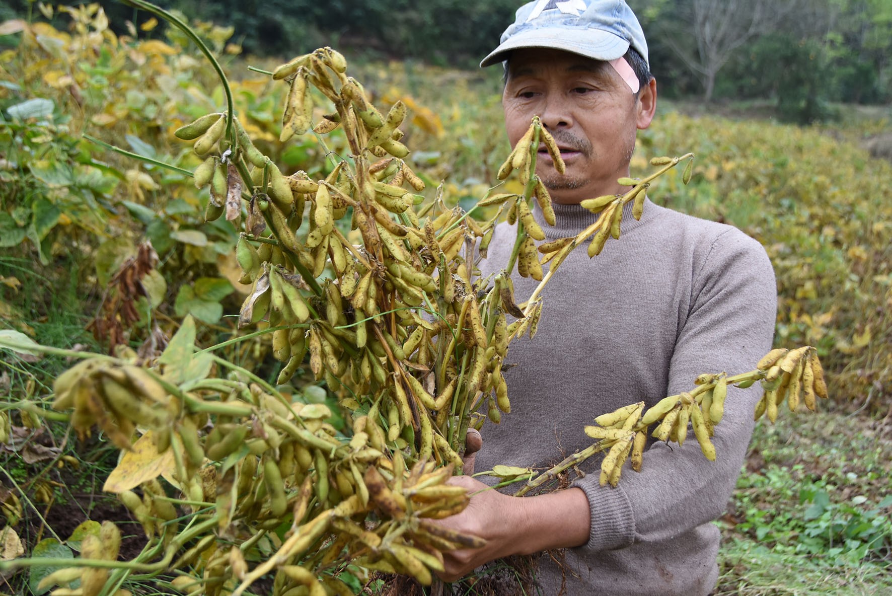 4000亩大豆已收70%。“收得早的大豆,都晒干了400多斤,还有点迟的,趁这两天没下雨赶紧收回去。”余家湾村12组的刘昌学扯了一把大豆展示说,今年的大豆好,这一把就可以剥一大碗豆子米,豆花随便吃。他说今年比去年多收了300多斤(干豆子)。