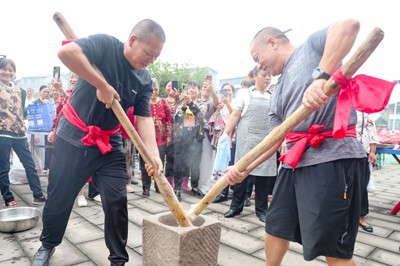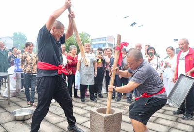2025年9月27日,四川省华蓥市华龙街道柏木山村的村民汇聚在村头,开展打糍粑、品糍粑等活动,用这种特别的方式传承传统文化,展示新时代山区群众的幸福生活,在开心中迎接国庆、中秋佳节来临。