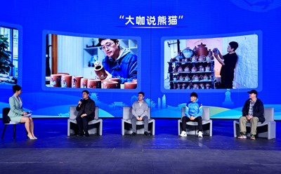 荣县土陶创意园首席艺术家刘勇应邀出席“大熊猫粉丝四川游”全球发布活动,并在《大咖说熊猫》高端访坛接受主持人的专访,刘勇向主持人和与会嘉宾介绍了荣州陶文化赋能、转型升级、跨界融合、创新破圈的探索和收获。【荣州陶】一澄熊猫文创参加了四川特色文化产品“熊猫市集”特展。