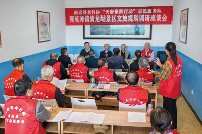 2025年9月23日,威远县老科协“天府银龄行动”志愿服务队文化旅游专委会分队到观英滩镇骑龙坳景区调研文旅规划实施情况,志愿者们冒雨视察了摄影之家、归悦·云知道两家民宿,并在云汇山庄召开了调研座谈会。县老科协顾问唐洪,县老科协会长龚建华、常务副会长兼城交专委会主任汪忠友及县老科协文化旅游专委会全体志愿者参加了视察和调研座谈会。副会长兼文旅专委会主任吴岳辉主持调研座谈会。县文广旅局和观英滩镇在会上介绍了骑龙坳旅游度假区的规划和建设情况。调研座谈会围绕骑龙坳旅游度假区的文化旅游资源现状、文化旅游专项规划和民宿产业发展中存在的问题进行了全面深入研讨。