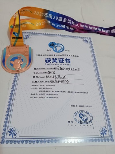 2025年10月16日至19日,2025年第29届全球华人羽毛球单项锦标赛在四川省成都市龙泉驿区东安湖体育公园举办。该赛事由全球华人羽毛球联合会主办,吸引了来自全球19个国家及地区的近3400名选手参赛。
