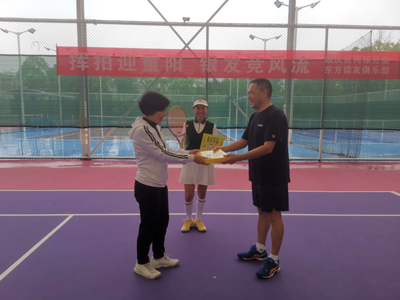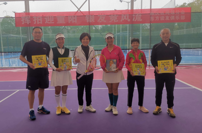 经过激烈角逐,A组李继红和李春余、杜春蓉和冯光平、谢淑蓉和王雄军分别获冠、亚、季军;B组杜江和赵国宏、唐国斌、张建平和史冀川分别获冠、亚、季军。东方读友俱乐部分为冠、亚、季军赠送图书一册。每位参赛选手获得写有“重阳节网球比赛纪念”并加盖有网球分会和东方读友俱乐部印章图书一本。
