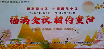 九九重阳节,浓浓敬老情。2025年10月29日,由四川成业物业服务有限公司、中国电信、中江县谭家街社区、中江县红苹果幼儿园主办,中江县中西医结合医院协办的“福满金秋·相约重阳”敬老活动,在中恒国际衣区隆重举行。中恒国际社区家里有孩子的老人及业主近300余人参加,营造了老少欢聚一堂,爱老敬老,邻里团结、温馨和谐、欢度重阳、温馨祥和的节日氛围。