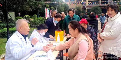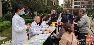 中西医结合医院医护人员,现场搭建义诊服务区,为老年业主们提供免费基础体检(含血压、血糖测量、视力检测),同时针对老年人常见的高血压、糖尿病、关节疼痛等问题提供专业咨询,发放健康养生手册,提醒老年人日常健康知识。