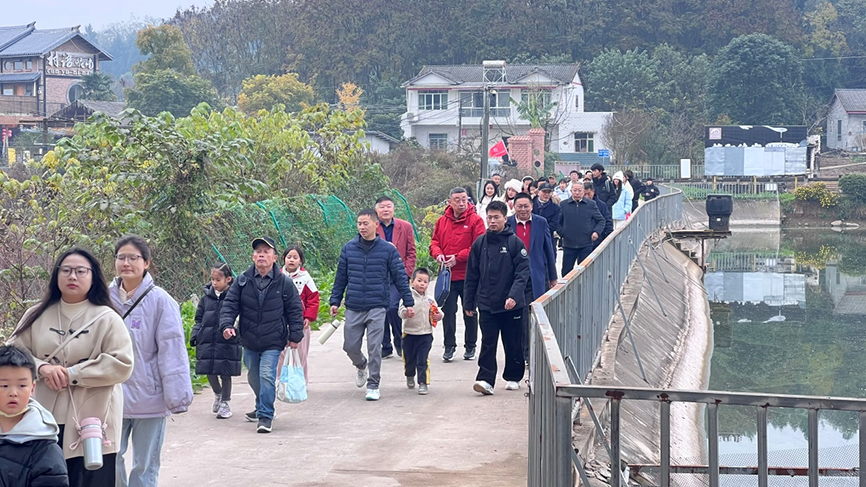 上午九时,活动在简朴而温馨的开场中拉开序幕。志愿者与孩子们结对组成“临时家庭”,从语呢喃度假山庄出发,沿着涪兴大道、欧公大道、杨家派出所、杨家镇阳光小学、俊熙家庭农场,最终返回起点,完成了一条全长7公里的乡村小环线徒步乡村观光。