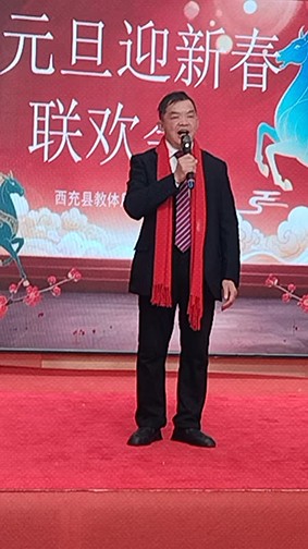 活动在热烈欢快的氛围中启幕。党支部书记黄永平率先登台致辞,他代表退休党支部向为西充教体事业奉献青春与热血的老同志们致以诚挚问候,向默默支持的家属们表示衷心感谢,向一直致力于丰富群众文化生活、传递社会正能量、为大家带来艺术盛宴的心连心艺术团老师们送上热烈掌声。致辞中,书记深情回望老同志们在三尺讲台育桃李、于教体战线勇担当的奋斗岁月,感慨大家虽已卸下重担,却依旧心系教育、情牵彼此。随后,他以“初心映征程,奋进迎新春”为题赋诗一首,铿锵词句、真挚情怀赢得全场阵阵掌声。