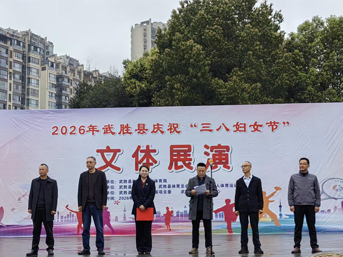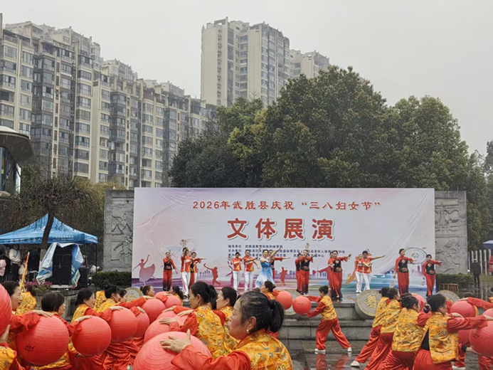 3 月 7 日,武胜县老年人体育运动协会和武胜县妇女联合会联合在县人民广场举办庆祝三八国际妇女节文体展演活动,120 名展演人员登台献艺,为广大妇女群众送上节日祝福,助推全国全民健身模范县创建。