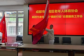 会议全面部署2026年度双流区老年体育工作重点任务,启动并授旗成立区级“银龄行动”志愿服务队及25支分队,为全区老年体育事业与志愿服务工作擘画新蓝图,凝聚新力量。