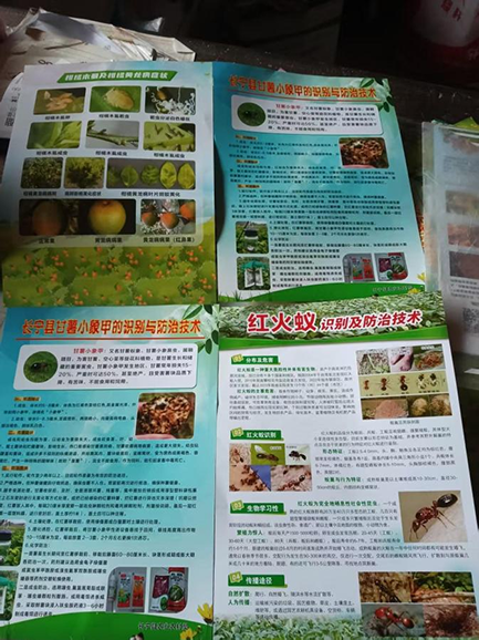 累计发放《红火蚁识别与应急处置》、《柑桔黄龙病综合防控技术》、《甘薯小象甲虫发生与防控》等技术资料1000余份。通过普及红火蚁、柑橘黄龙病等重大有害生物的识别与防控知识,有效提升了基层群众的防范意识与应对措施。
