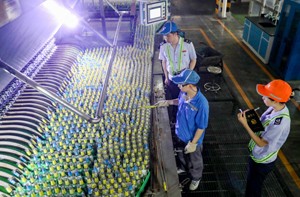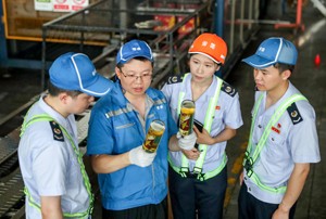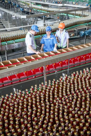 图为2023年7月13日,国家税务总局四川武胜县税务局的工作人员,深入辖区企业华润雪花啤酒(四川)有限责任公司广安分公司生产一线,现场了解生产经营情况。(邱海鹰)