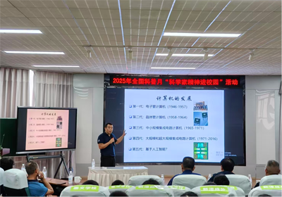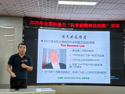 肖鸣宇教授是计算机算法领域的知名专家,深耕算法与计算理论研究二十余年,科研成果丰硕,教学经验丰富,培养了众多优秀科技人才。讲座中,肖教授摒弃深奥术语,以“故事化”方式解读图灵奖的重要意义,如数家珍地介绍了图灵奖获奖科学家的成长之路,为青少年打开了一扇通往科学世界的大门,让科学家精神在孩子们心中熠熠生辉,肖教授还结合生动案例介绍了图灵奖获得者在计算机发展史上的开创性贡献——从早期计算机图灵机的发明到人工智能的萌芽,从互联网的构建到信息时代的到来,让抽象的科技知识变得鲜活易懂。