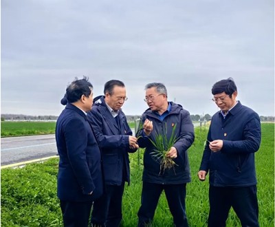 2025年3月14日,南通市老科协会长黄卫成(左二)率队参加全市“银龄助耕 碧护沃野”春耕科技行活动,与农技人员现场交流