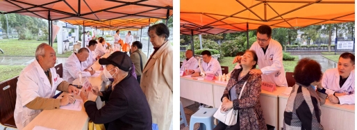 上午,天空虽然飘着细雨,但“水文化广场”上鲜艳的红色横幅和几顶橘红色的义诊帐篷格外醒目,传递着格外的暖意与关怀。“银龄智慧”服务团的专家与医院的老师们及党员志愿者一早就位,设置血压血糖检测、疼痛咨询与评估、名老中医诊疗等多个服务区域。现场布置的系列科普展板,内容涵盖疼痛的分类、常见误区、自我管理等实用知识,并介绍了“世界镇痛日”设立的背景与意义——旨在推动全社会共同关注疼痛这一重要健康问题,倡导“疼痛不必忍、科学早诊治”的理念。