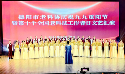 10月27日上午,德阳市老科协举办的庆祝“九九重阳节”暨第十个“全国老科技工作者日”文艺汇演,在四川工程职业技术大学立言楼学术报告厅圆满落幕。绵竹市老科协竹之韵艺术团凭借两个特色节目脱颖而出,成为全场焦点。德阳市老科协各专委会、分会与区市县老科协同台献艺。绵竹市老科协会长崔金柏率竹之韵艺术团64名演职人员参加了此次活动,党委书记兼常务副会长李太福、副会长兼秘书长袁发全、党办主任高永平全程随团指导服务并观看了演出。