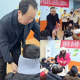 走进活动室,老科协的专家与志愿者们脚步放得轻轻的,目光里满是疼惜与温柔。大家纷纷蹲下身,与孩子们平视相对,小心翼翼地将柔软的毛线围巾系在他们脖颈间。