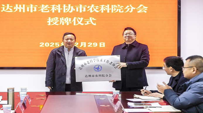 会上,市老科协副会长吴东梅宣读《达州市老科学技术工作者协会关于成立达州市老科学技术工作者协会达州市农科院分会的通知》;徐盛惠会长向分会会长王志德授牌。