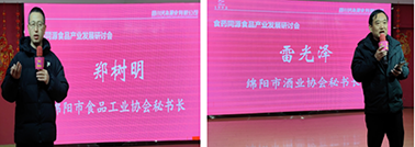 绵阳市食品工业协会秘书长郑树明、绵阳市食品产业协会郑树明秘书长、绵阳市酒业协会雷光泽秘书长结合食品产业、白酒产业发展,提出了坚守诚信与共赢,探索药食同源与健康食品的创新发展模式,聚焦食药同源产品研发、生产制备、工艺创新、消费场景、目标群体衔接等多个层面打通全链条,实现产品与市场的精准提升品牌粘性与市场竞争力等建议。