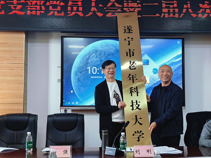 会议还举行了遂宁市老年科技大学授牌仪式,刘刚会长为市老年科技大学授牌,市老年科技大学副校长邹显斌正式接牌,标志着遂宁市老年科技教育工作迈入新阶段。蓬溪县、大英县老科协以及市老科协各分会依次进行工作经验交流,分享工作亮点与实践心得,促进各单位互学互鉴、共同提升。
