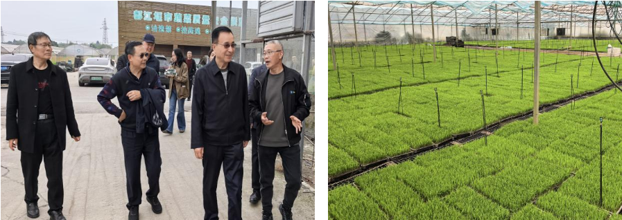 蔡敏勇会长一行首先来到四川省、成都市和都江堰市三级老科协科技服务联系点——四川圣寿源农业有限公司。董事长蒯世军介绍了公司的发展历程、蔬菜育苗、水稻育苗及绿色蔬菜联盟建设情况。圣寿源是四川省级农业产业化重点龙头企业。公司流转土地近6000亩,年产值超过3000万元,解决近千人就业,带动周边3000余农户增收致富。公司年育蔬菜苗1.5亿苗,联合48家蔬菜种植经营主体,在全省率先创建了蔬菜质量安全联盟、蔬菜配送中心,取得19个食用农产品绿色认证。在省、市老科协的指导帮助下,坚持科技创新发展理念,积极探索稻蔬轮作中土地经营、粮经融合发展新路径,推广新技术、新品种,助推乡村产业振兴和农民增收致富。在“大春归农户”“小春归企业”的稻蔬轮作融合生产经营新模式方面积极探索,为建设更高水平的“天府粮仓”发挥了示范引领作用。去年,水稻早熟品种育苗7000余亩,蔬菜育苗移栽万余亩,玉米育苗近4000亩。川芎大棚育苗试验近20亩,推广新品种“双籽油11”,在育苗时推广新技术靶向根治“根肿病”取得成效。