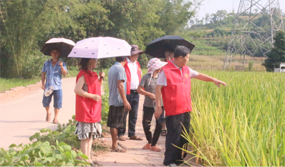 8月5日下午,宜宾市老科协戎州银铃科技服务团到叙州区双龙镇黄格村调研水稻高产创建示范。市老科协常务副会长兼秘书长、高级农艺师郭建华,副秘书长李孝轩,现代农业与乡村振兴专委会主任、正高级农艺师余世权,叙州区老科协会长郑朝洪,农专委主任,高级农艺师王国银,环专委主任李金伟,村两委等参加本次调研活动。