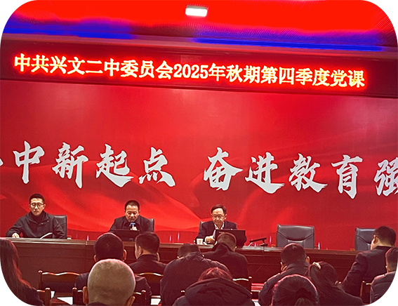 兴文二中附属实验学校党总支部书记袁小平以“强化党员担当,筑牢育人根基”为核心,结合学校工作实际讲授专题党课,引导党员干部深刻认识自身在教育教学中的先锋模范作用,将廉洁自律、师德规范融入日常工作。